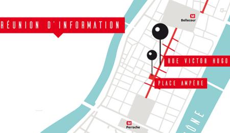 David Kimelfeld, Président de la Métropole de Lyon, Georges Képénékian Maire de Lyon, en présence de Denis Broliquier Maire du 2e arrondissement de Lyon, ont le plaisir de vous inviter à une réunion d’information au cours de laquelle, nous vous présenterons les avancées du projet ainsi qu’un premier calendrier des travaux de requalification des espaces.