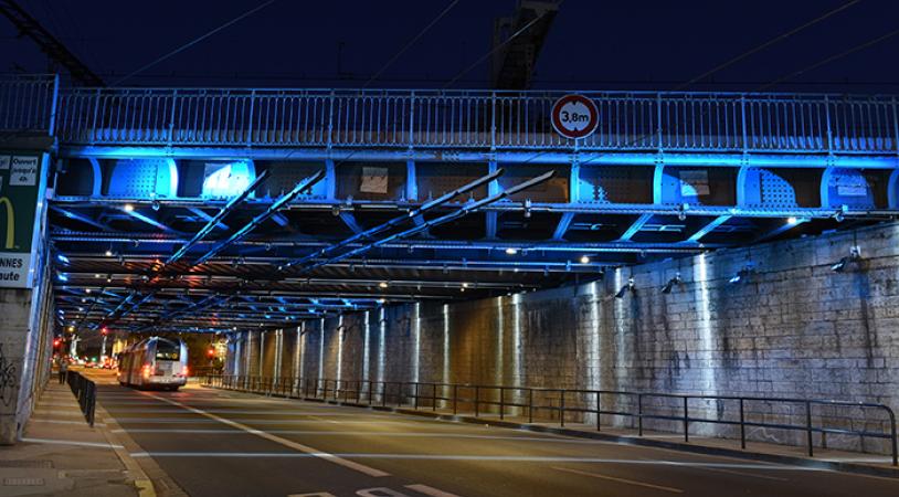 Depuis 30 ans, la Ville de Lyon s’est engagée dans une stratégie ambitieuse de transformation de son paysage nocturne avec deux plans lumières successifs. Au-delà des mises en lumière patrimoniales, elle porte une attention particulière à chaque quartier, aux ouvrages d’art et notamment aux ponts sur les fleuves ainsi qu’aux voies ferrées qui ceinturent la ville. Près d’une trentaine de ces franchissements ferroviaires bénéficient d’un éclairage spécifique.