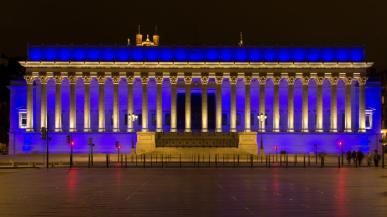 La ville a élaboré une séquence lumineuse dynamique en bleu pour accompagner le remerciement spontané de tous aux personnels soignants.
