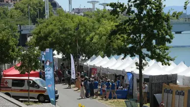 Mise en place d'un espace de restauration pour le village du festival Entre Rhône et Saône sur les berges de la Guillotière.