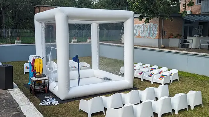 Un cube transparent gonflable de 4x4m, "L'aquarium des méduses".