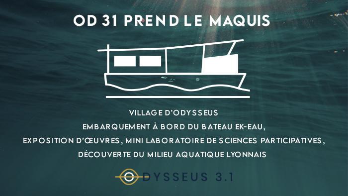 Quand deux associations Odysseus 3.1 et Le Maquis convergent vers les mêmes valeurs, nait une volonté de transmettre, sensibiliser les lyonnaises et lyonnais aux richesses aquatiques. Fortes de leurs expériences respectives, elles ont à cœur de vous embarquer à la découverte de l’eau à travers plusieurs thématiques : artistique, scientifique, participatif…