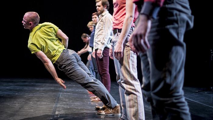Correction met au défi sept danseurs : interpréter un spectacle de danse tout en étant littéralement immobilisés au sol par les pieds, alignés. Une performance des plus surprenantes et pleine d’humour !