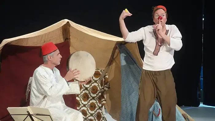 Un moment magique, tout public (dès 3 ans), où se mêlent magie, musique orientale, mime burlesque et clown. Né de la rencontre entre un clown d’Alsace et un musicien venu d’Orient, ce spectacle drôle et poétique vous invite à un voyage... quelque part entre la choucroute et le couscous !