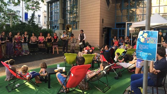Depuis 2015, les apéros du monde sont organisés par la Maison pour tous des Rancy aux abords de son bâtiment. Cette manifestation se veut être un temps convivial de rencontres musicales, à la sortie du travail : chaises longues et tables basses à la disposition du public, une petite buvette pour offrir quelques rafraîchissements. La programmation musicale est articulée autour de ressources artistiques locales, dans une esthétique Musiques du Monde, pour illustrer la diversité culturelle du quartier d’implantation de la MPT des Rancy.