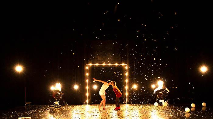 Né de la rencontre, en 1720, de Marivaux avec les interprètes de la Comédie-Italienne, Arlequin poli par l’amour convoque la fougue de la jeunesse, son insolence, sa bêtise splendide, sa maladresse aussi, ses enchantements… Pour raconter une histoire d’amour tyrannique. Celle d’une fée qui séquestre l’élu de son cœur : le jeune Arlequin. Quelques ampoules, des guirlandes lumineuses, des pluies de cotillons et des bouquets de ballons forment le cadre féérique de cette joute passionnelle qui tournera à l’avantage des attachements sincères et naïfs.