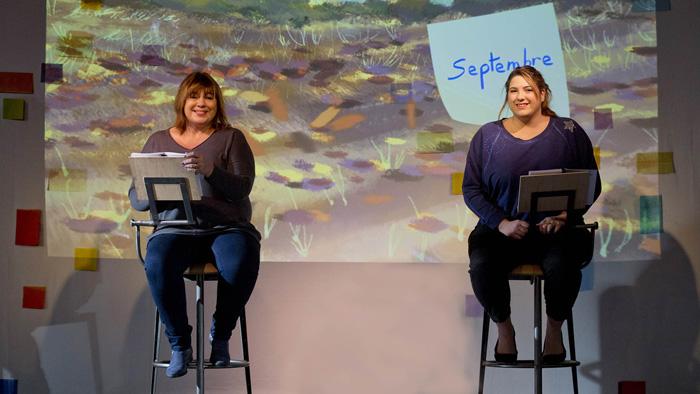 Quelque part au Canada, une toile blanche au fond de la scène couverte de multiples post-it multicolores est le témoin d’une conversation entre Kate (15 ans) et sa mère. La jeune fille vit sa vie d’adolescente entre le lycée, son petit ami, sa meilleure amie et sa mère, médecin, souvent absente.