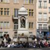 La rue du Boeuf à proximité tient sont nom du boeuf, qui est en réalité un taureau, sculpté à l'angle de la rue et de la place Neuve St-Jean.