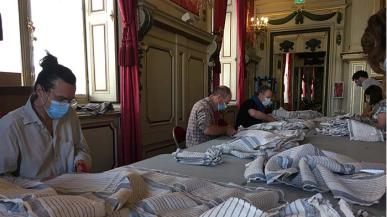 Les premiers masques reçus par la Ville de Lyon ont été livrés « à découper » pour permettre une distribution rapide.