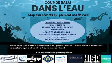 Participez au Coup de Balai dans l'Eau spécial Festival Entre Rhône et Saône pour nettoyer le Rhône, dans l'eau, sur l'eau et sur les rives du fleuve.