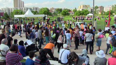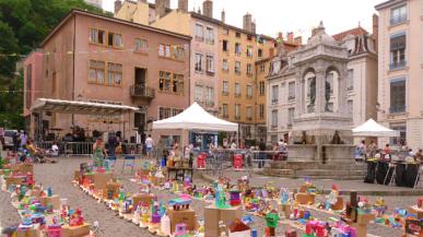 Les associations, écoles et habitants du quartier du Vieux-Lyon investissent la place Saint-Jean afin de célébrer les cinquante ans de la MJC.