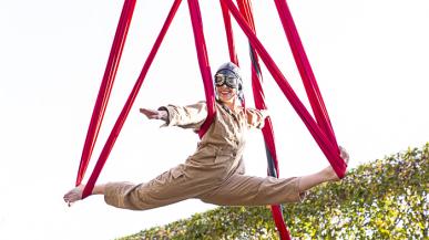 L’Aviatrice, c’est un spectacle acrobatique, musical et conté, qui embarquera petits et grands à travers le temps et le vent.