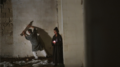 Deux danseurs et un musicien transforment des centaines de vêtements blancs en jardin japonais karensui...